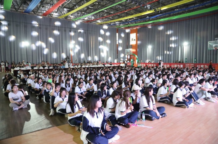 当精彩纷呈的力明学院庆祝护士节晚会进入尾声时,全场师生们都将准备离场。未曾想到,又发生了一件感人的事,把晚会推向高潮。当时,王力一校长得知残疾学生高曼也在现场,他突然提议熄灭场内所有灯光,大屏幕播放出高曼参加开学典礼的视频。校长满怀深情的告知在场的所有师生,影片里的高曼现在就在咱们的身边。